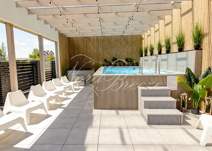 Located a 16-minute walk from the Sports Stars Avenue, Domki Nord Breeze Z Podgrzewanym Basenem I Jacuzzi Wladyslawowo villa features a swimming pool, a hot tub and an indoor pool, ensuring a relaxing stay. Boasting access to a terrace, this 10-room holiday home invites guests to visit the Observation Tower in the Fisherman's House, located 1.7 km away.